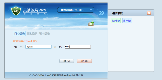 添加后返回软件,再次点击连接,连接后提示输入用户名密码,输入自己的账号密码即可(初始密码为hubu@+身份证号码后六位),首次登录需要更改密码,点确定输入用户名密码登录后,就可以正常使用VPN了。