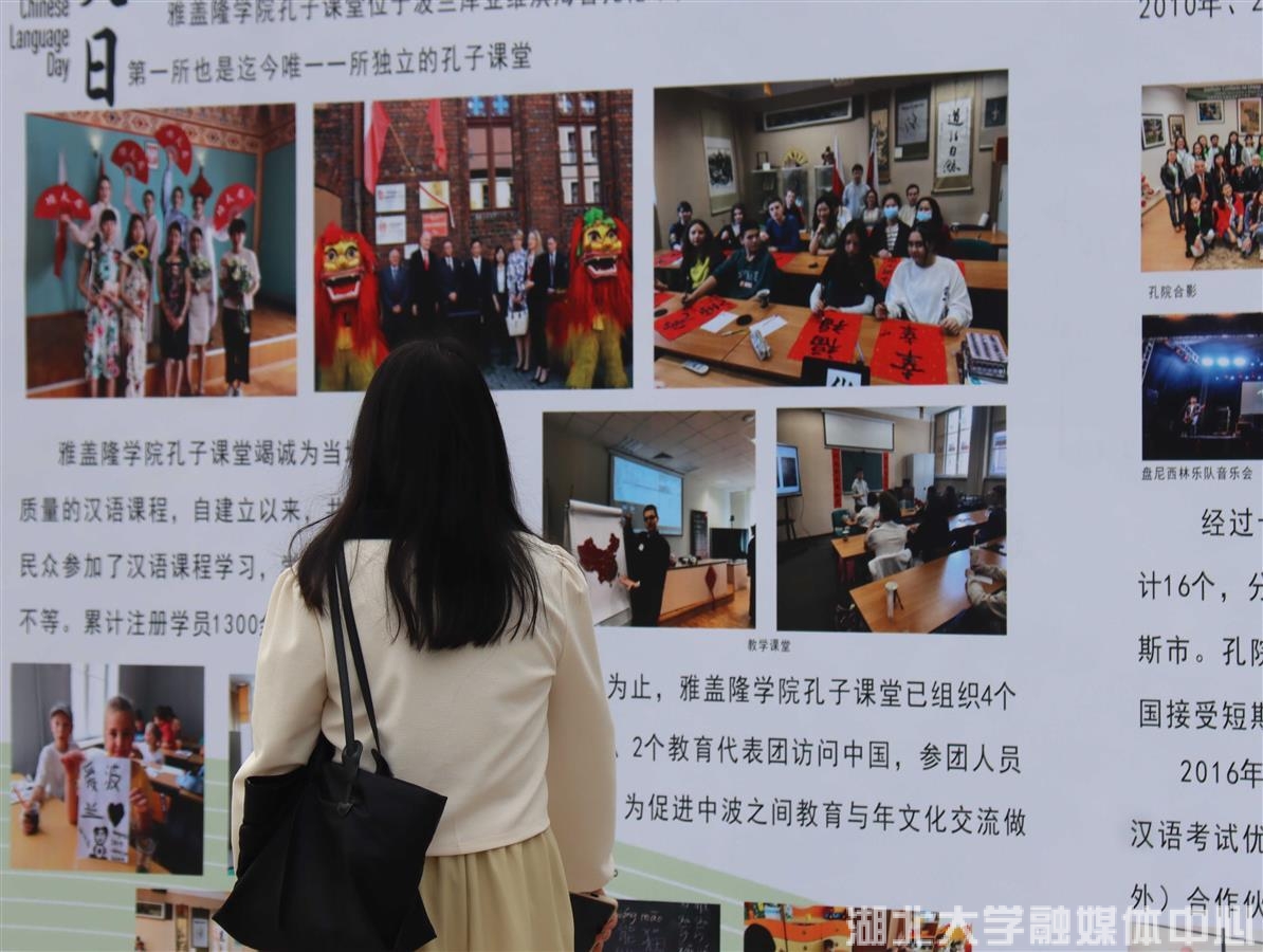 据介绍,湖大“国际中文日”活动旨在让不同文化背景的人了解中文的优美、中国悠久灿烂的历史文化。今年除组织国际学生线上观看节目视频外,该校还在广场上设置展板,介绍汉字起源,展示国际学生创作的中国画、书法等作品。