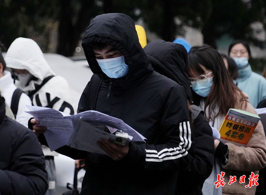 开考前,华中科技大学考点,考生抓紧时间复习。长江日报记者高勇 摄