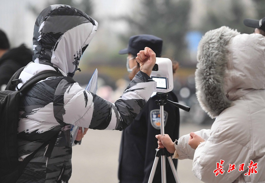 考生进考场前先测温。长江日报记者高勇 摄