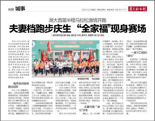 检录现场,记者的镜头里捕捉到这样一组家庭,中间6岁的女儿被张永双手举起,一家人在现场合影留念,其乐融融。据了解,张永是湖大2005届校友,第一次带着家属来参加母校举办的“湖马”比赛。