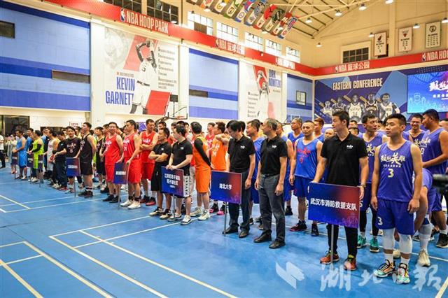 比赛采用FIBA篮球规则,采用淘汰赛制,8支球队抽签进入上、下半区进行8进4,4进2以及决赛最多三轮的比赛争夺。参赛队伍经过一次失利后即被淘汰,连续获胜的队伍继续比赛直至最后决赛。 作为本次活动的支持方,NBA中国将三带有NBA全明星球员签名的篮球分别赠送给武汉大学中南医院、武汉大学人民医院和武汉市第四医院。(湖北日报见习记者 何宇欣 摄)