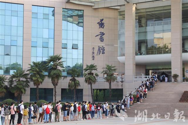 当天一大早,湖大图书馆门前就已排起了长队。学生们依次测温、领取号码牌,刷卡入馆。清晨6点多就来到图书馆前排队的生物科学专业2017级学生张若霜,“抢”到第一名——领到了001号号码牌。与图书馆阔别8个月,再次进入图书馆学习,她的心情十分激动:“我打算考研,要抓紧时间好好学习。”