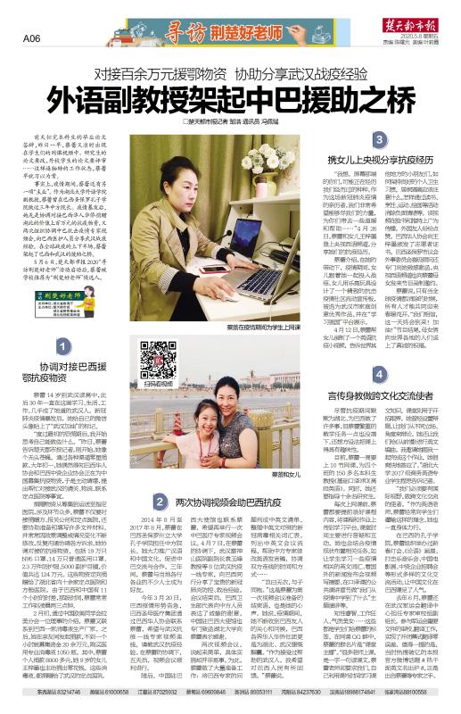 【楚天都市报】湖大外语副教授架起中巴援助之桥