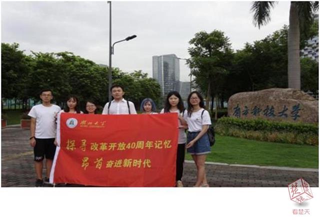 在深圳博物馆、蛇口博物馆,队员们通过文字、图片、实物及影像等多种形式对改革开放的历程有了全面认知;2007年以来,以改革创新为目标为使命的内陆高校的“深圳校区”应运而生,团队走访了南方科技大学、北京大学深圳研究生院、清华大学深圳研究生院等高校,沟通交流学校情况,开拓视野格局;莲花山公园通往山顶的一节节台阶似乎印证了深圳改革开放四十年一步步的变化,队员们抵达山顶俯视福田中心区,望着鳞次栉比的现代城市建筑群,深深为深圳速度所震撼,大家在邓小平同志的雕像前鲜花,致敬改革开放总设计师。