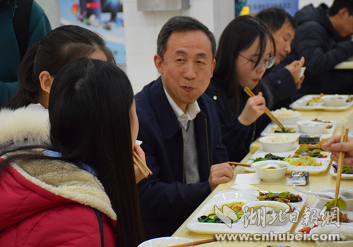 主题报告之前,尚钢书记在食堂与部分学生共进晚餐。详细了解学生在校的学习生活情况,仔细询问班级学风建设和校园文化活动开展情况,并寄语同学们抓紧美好时光勤学苦学专业知识,努力实现自的成才梦想。