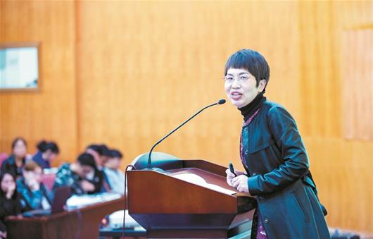图为:陈海元在演讲中 楚天都市报记者刘中灿摄