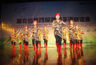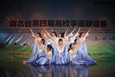 省残联朱志斌副理事长向大赛致辞。他说,省高校手语联谊赛已经举办到第四届,受到了中国残联的高度肯定,成为了湖北省关爱残障人士的重要载体。比赛搭起了高校与残疾人之间的桥梁,让青年学生在校期间能用实际行动关心残疾人,了解他们的生活、倾听他们的心声,展现了当代大学生的精神风貌和优秀品格。