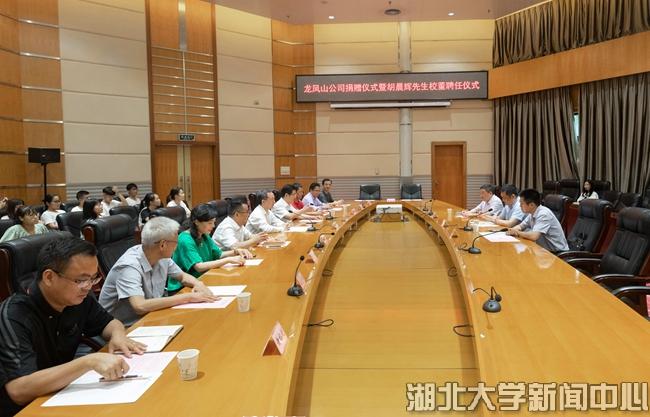 尚钢与胡俊华签订捐赠协议并赠送捐赠证书,向胡晨辉颁发校董聘书。