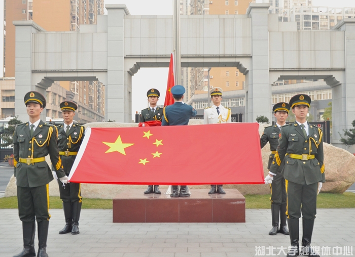 早上7点10分,武昌校区升国旗仪式开始,国旗护卫队迈着铿锵有力的步伐,护送五星红旗入场。伴随着庄严的国歌,五星红旗冉冉升起,迎风飘扬。